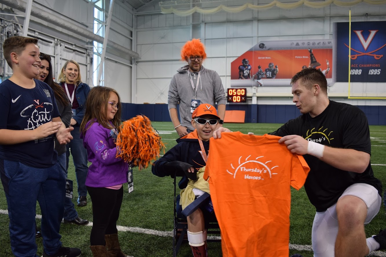One of the greatest days Leiland’s had. Thursday’s Heroes is a program put on by the University of Virginia Athletic’s Department. They honor kids that have overcome challenges in life.